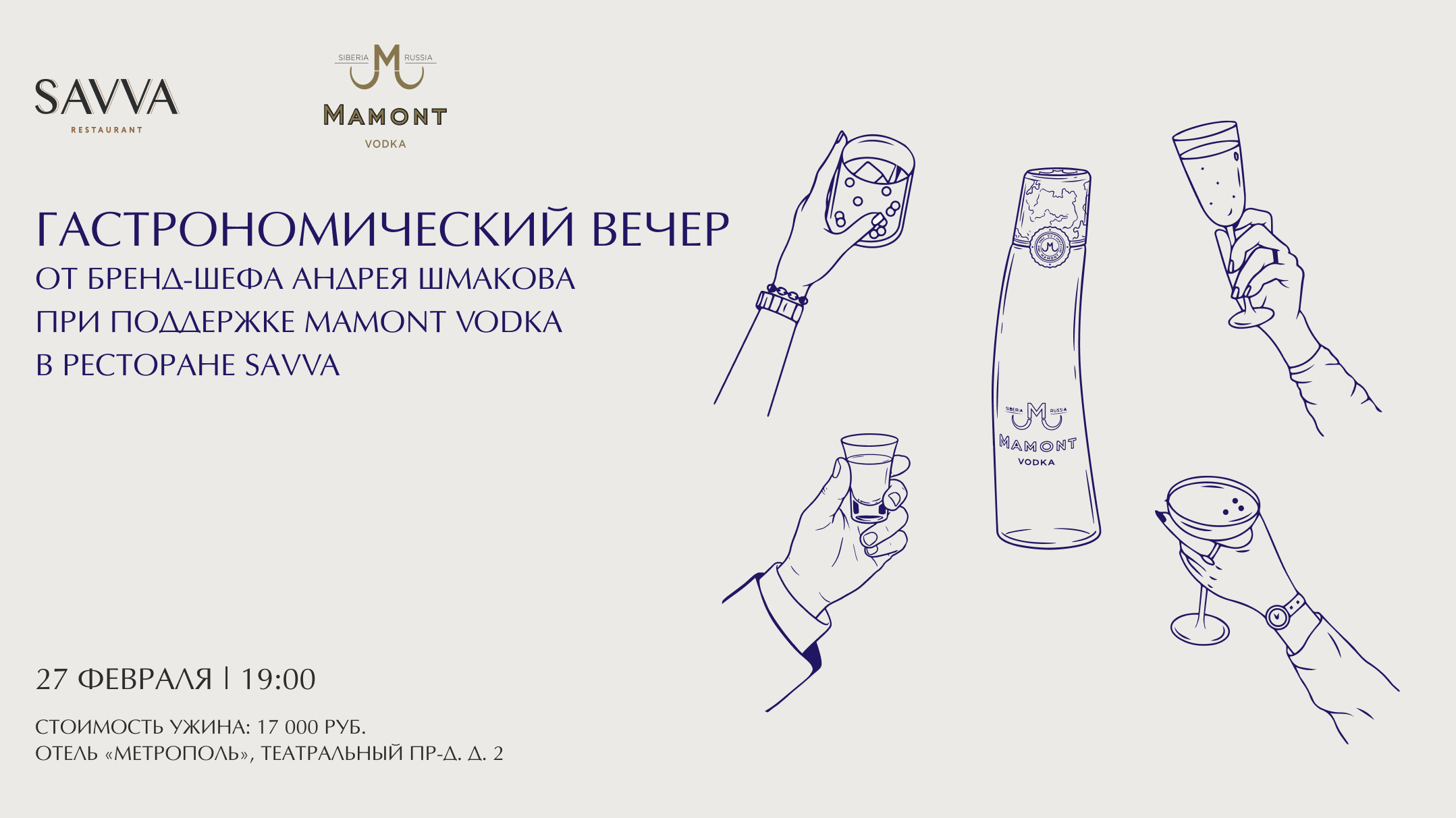 27 февраля в 19:00 в ресторане Savva, в здании отеля «Метрополь», состоится гастрономический ужин под руководством бренд-шефа Андрея Шмакова и шеф-сомелье Янины Мартынюк, созданный совместно с брендом премиальной водки MAMONT. Вечер задуман как последовательный гастрономический маршрут, где блюда и напитки работают в паре, усиливая вкусовые и текстурные особенности друг друга.