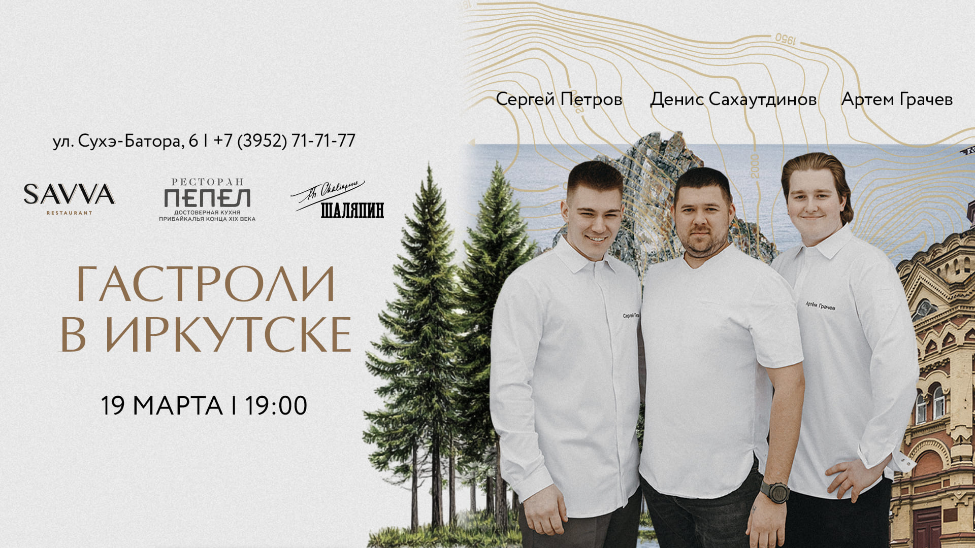 19 марта в 19:00 в Иркутске стартует гастрольный проект команды ресторана SAVVA и бара «Шаляпин» при отеле «Метрополь». Су-шеф Денис Сахаутдинов, шеф-кондитер Артем Грачев и шеф-бармен Сергей Петров под руководством бренд-шефа Андрея Шмакова отправляются в регионы, чтобы работать с локальными продуктами и традициями и на их основе создавать эксклюзивные ужины. Первой точкой маршрута станет ресторан «Пепел» в Иркутске — здесь команда представит сет из пяти подач, где профессиональный опыт московских шефов встретится с прибайкальским гастрономическим наследием.