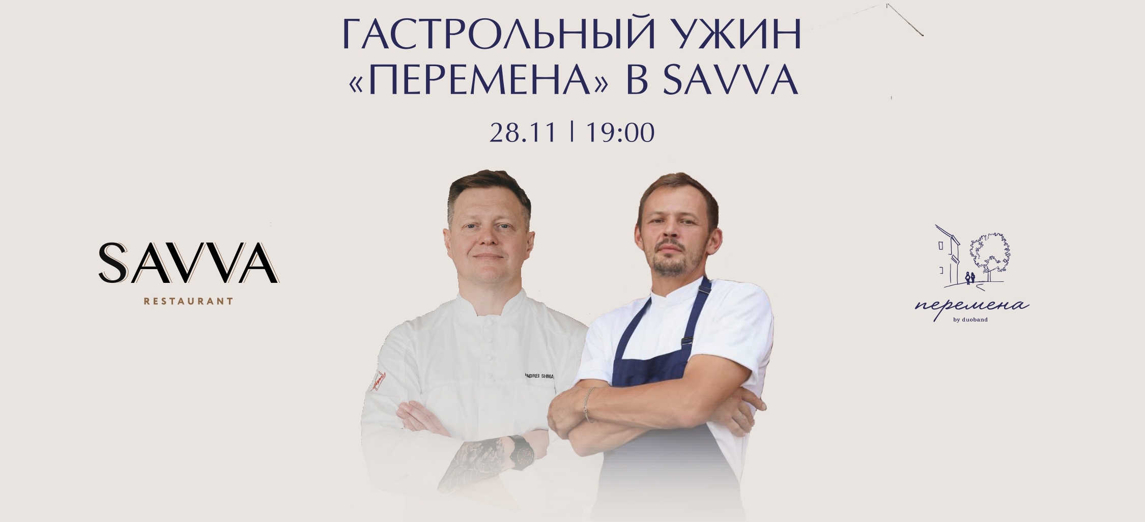 28 ноября, в пятницу, в 19:00 легендарный ресторан Savva примет знаковое гастрономическое событие: впервые в столице состоится ужин в четыре руки с командой петербургского проекта «Перемена», который открыла в сентябре 2025 года группа Duo Band. Этот вечер станет дебютными гастролями для «Перемены» и уникальной возможностью для московской публики познакомиться с актуальной русской кухней от шеф-повара и ресторатора Дмитрия Блинова, шеф-кондитера Стаса Пауля, а также бренд-шефа Savva Андрея Шмакова и шеф-кондитера Артема Грачева.