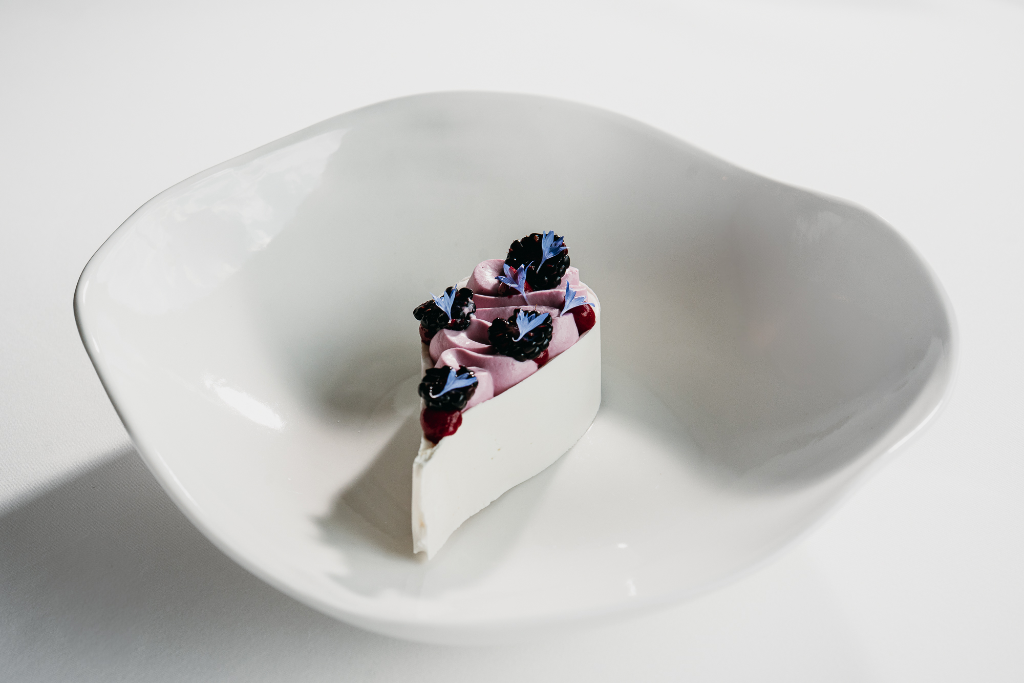 Торт приготовлен из свежего слоеного теста с прослойкой заварного крема с бурбонской ванилью. Джем из черной смородины придает десерту легкую кислотность, для оформления используется сахарная пудра. Торт украшается свежей малиной и голубикой, васильками и микромятой. Все элементы декора упакованы отдельно, чтобы добавить их непосредственно перед праздником вместе с близкими, превратив это в новогодний ритуал.